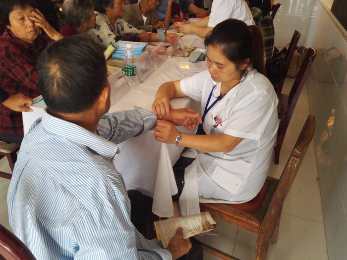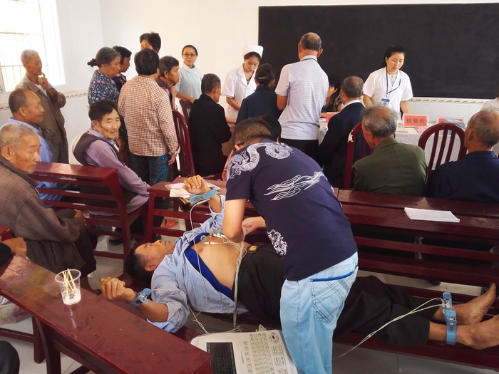 2015年9月17日,我院义诊团队来到青林乡姜岩村,为当地群众免费检查身体。